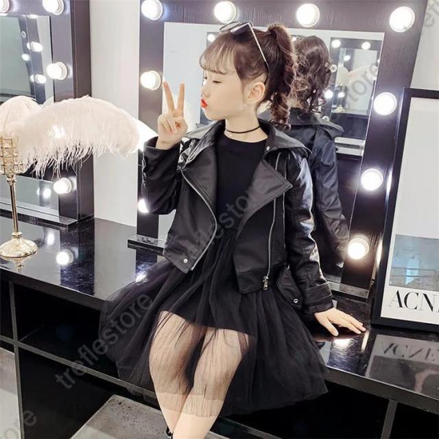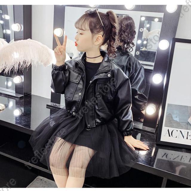 【ポイント5倍!】女の子 キッズ革ジャン 春秋冬 レザージャケット 子供 皮ジャン ジュニア トレンド おしゃれ ライダースジャケット 子供服 ジャンパ アウター 防寒防風