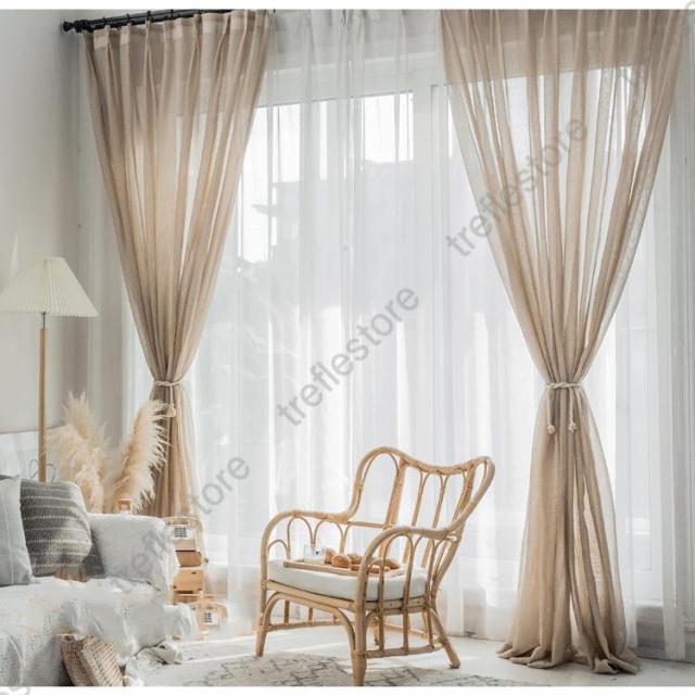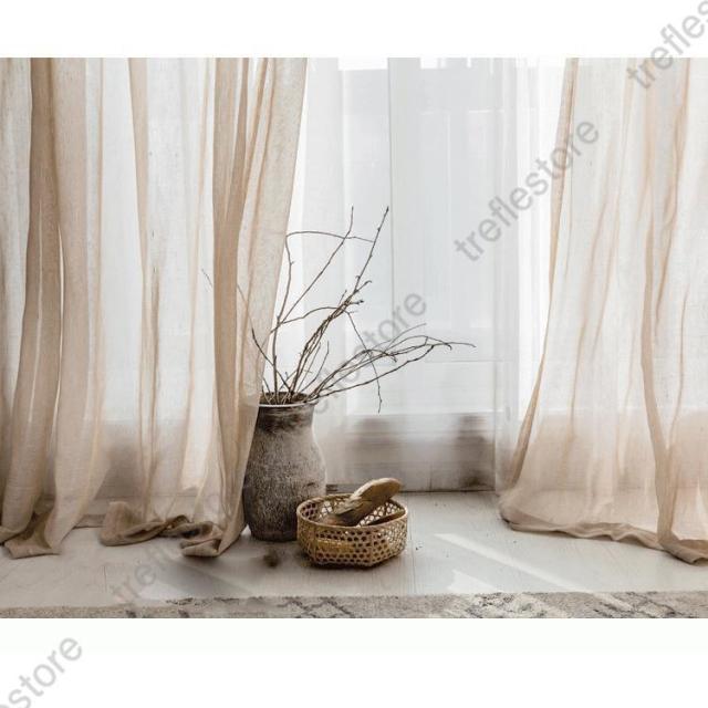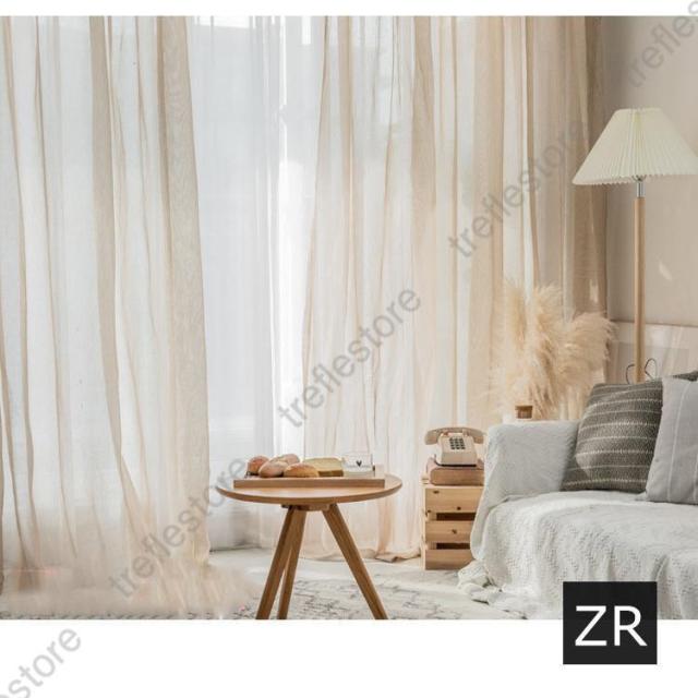 【ポイント5倍!】カーテン 半遮光 レースカーテン おしゃれ 北欧風 ins風 綿 リネン 遮熱 透光 UVカット 無地 白 腰窓 インテリア 丈直し フック オーダーカーテン