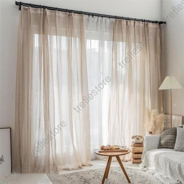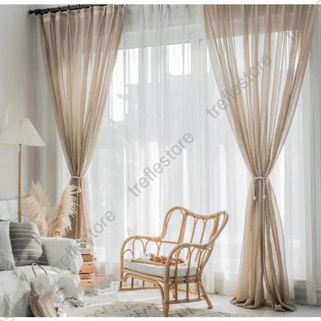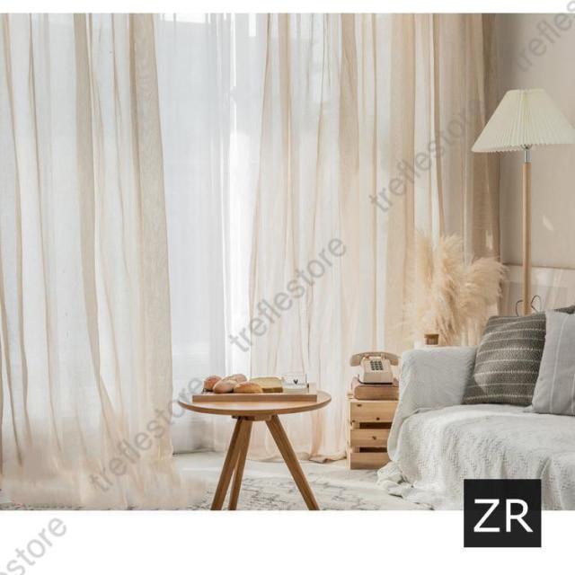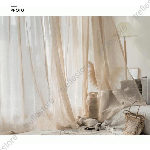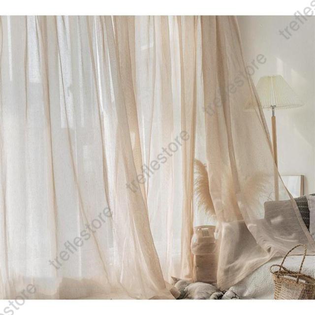 【ポイント5倍!】カーテン 半遮光 レースカーテン おしゃれ 北欧風 ins風 綿 リネン 遮熱 透光 UVカット 無地 白 腰窓 インテリア 丈直し フック オーダーカーテン
