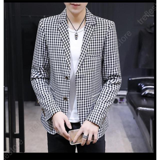 【ポイント5倍!】チェック柄 テーラードジャケット メンズ カジュアル ジャケット 通勤 面接 就職活動 スーツジャケット 大きいサイズ 薄手 春 夏 秋