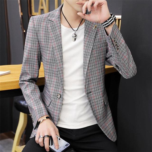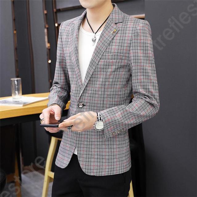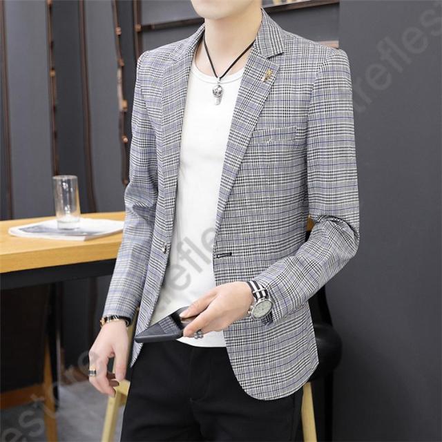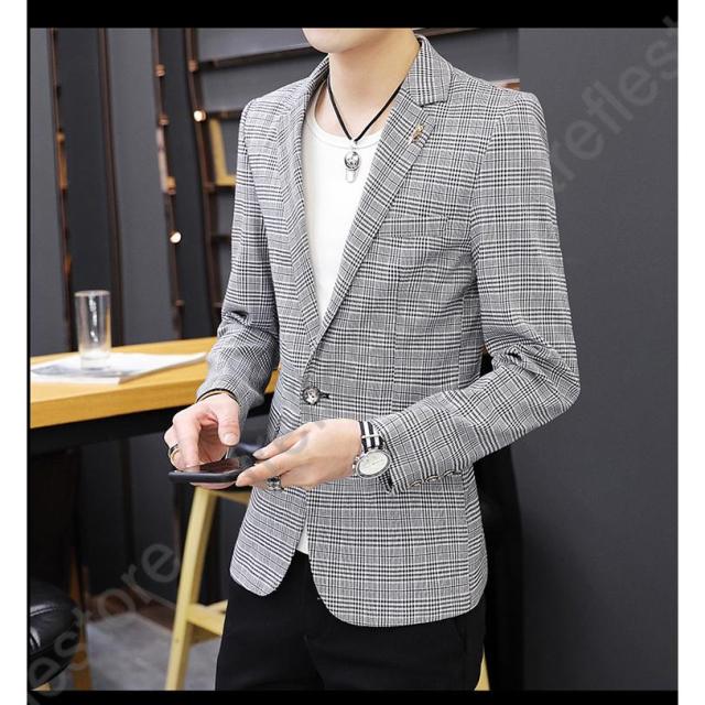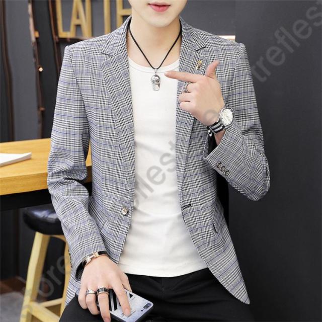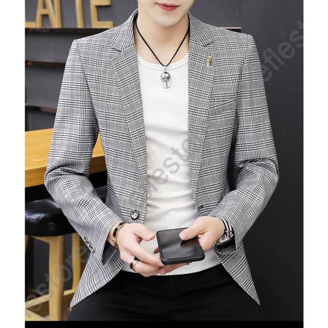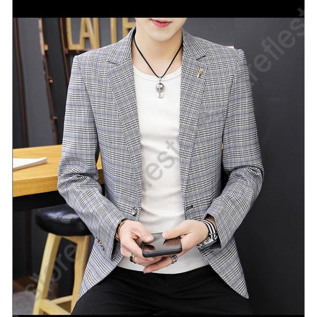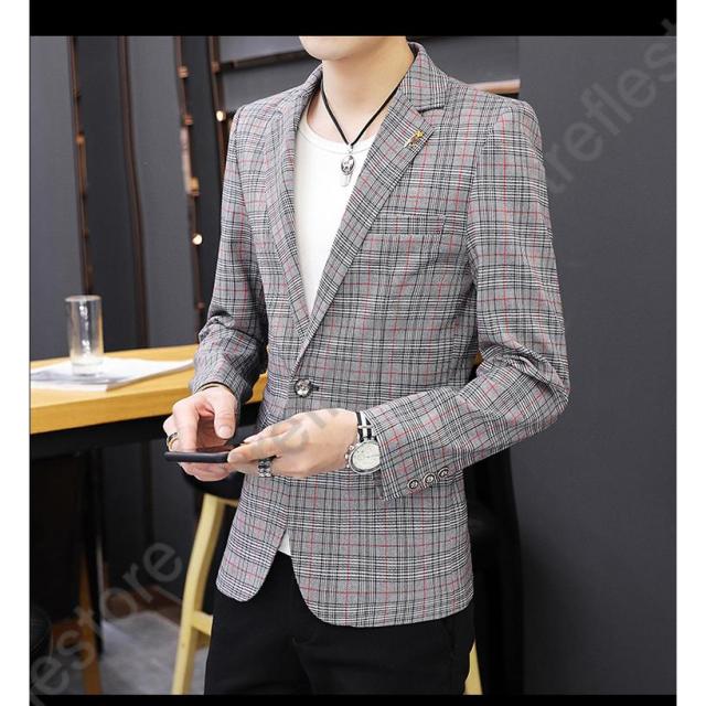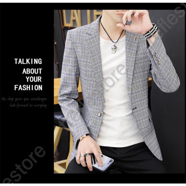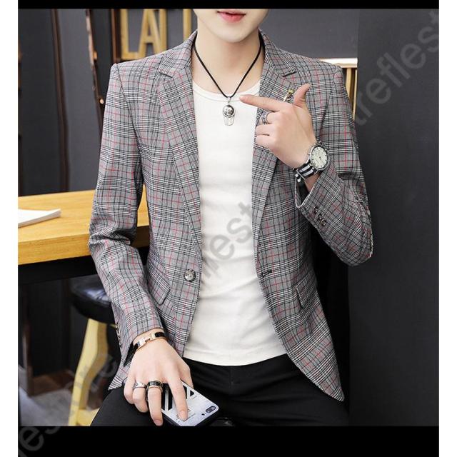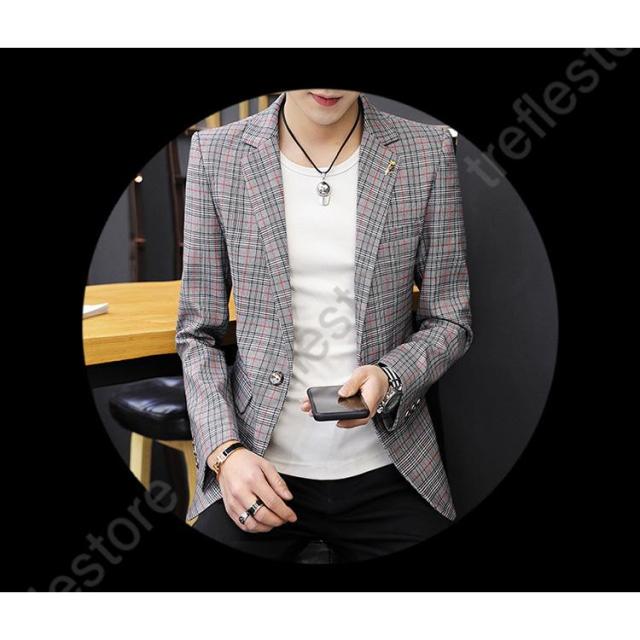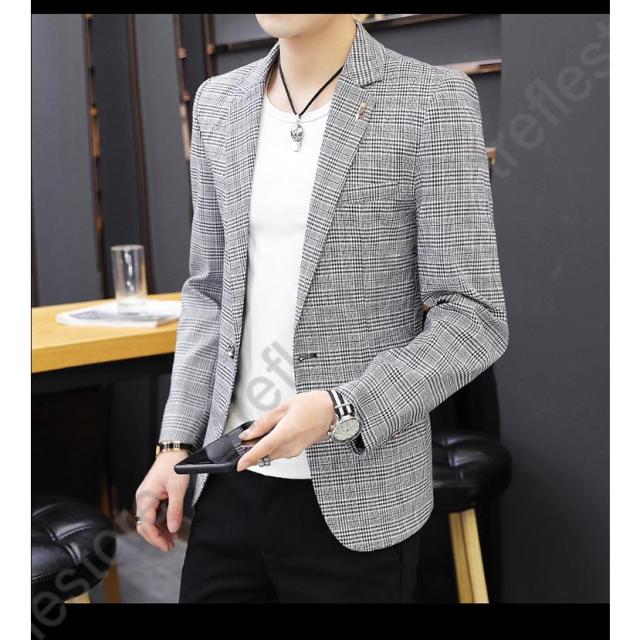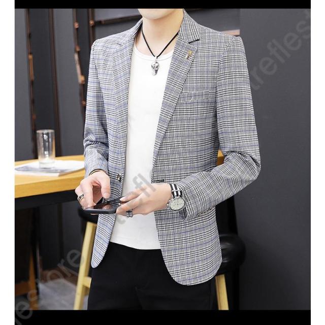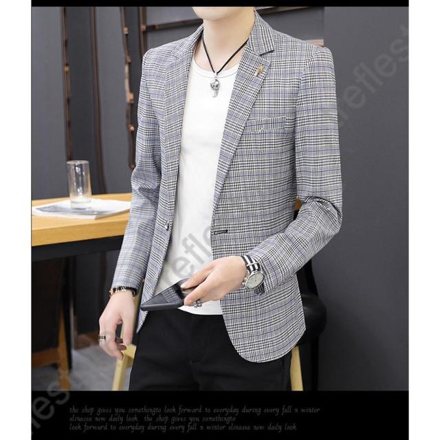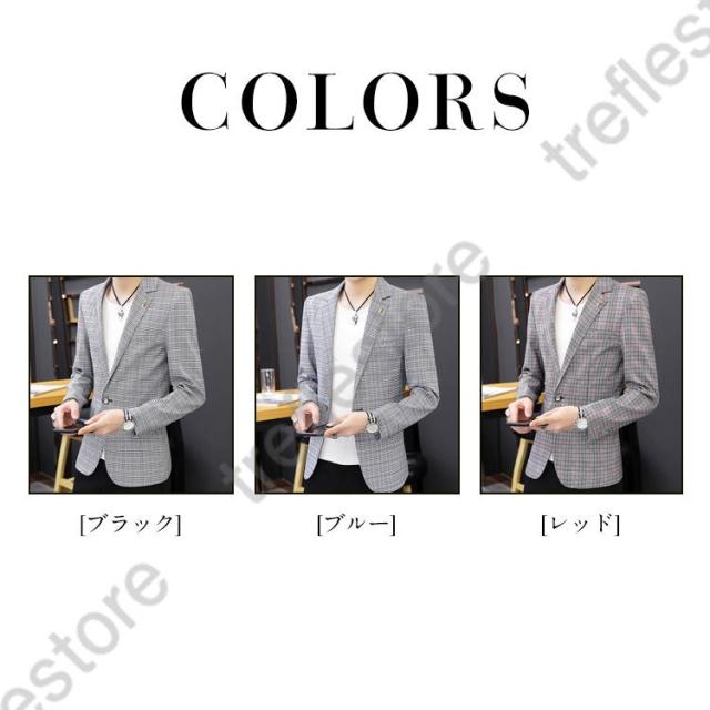 【ポイント5倍!】チェック柄 ブレザー 春 秋 大きいサイズ テーラードジャケット メンズ カジュアルジャケット 細身 新作