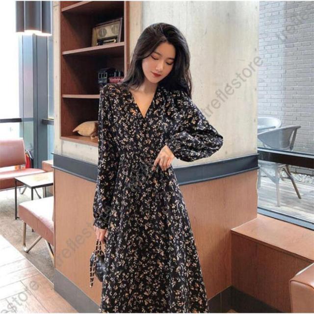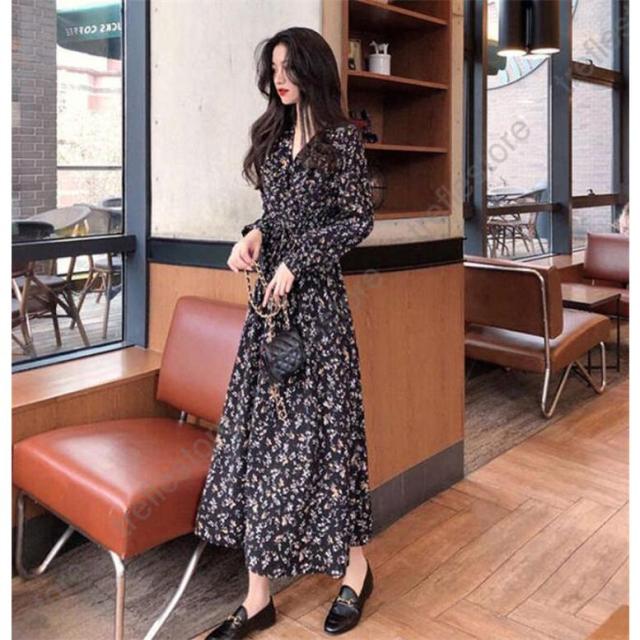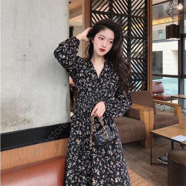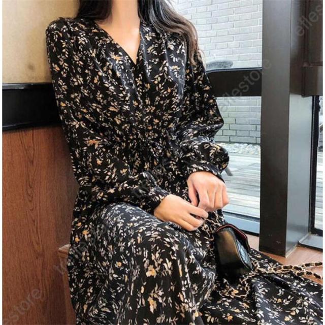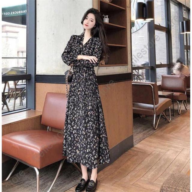 【ポイント5倍!】ワンピース レディース 長袖 花柄 Vネック きれいめ 大きいサイズ 夏 秋 ロングワンピース お洒落 体型カバー 着痩せ カジュア 薄手 旅行 リゾートワンピース