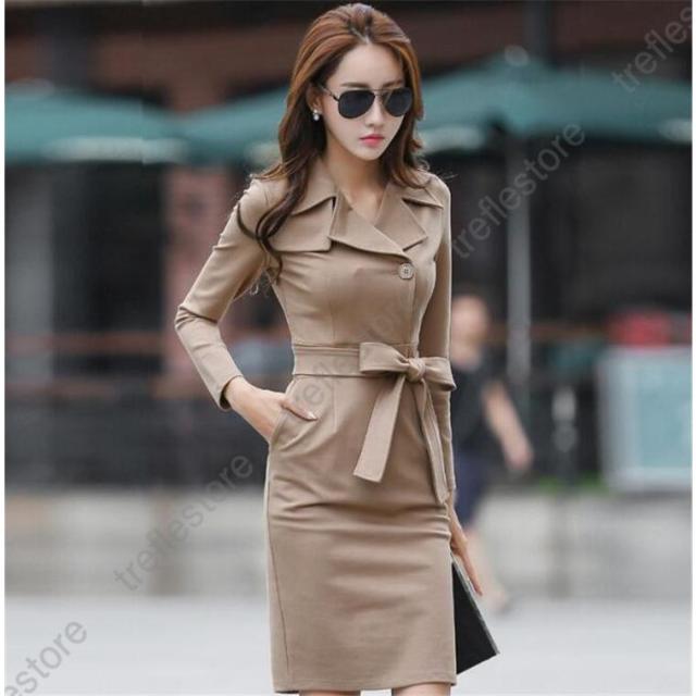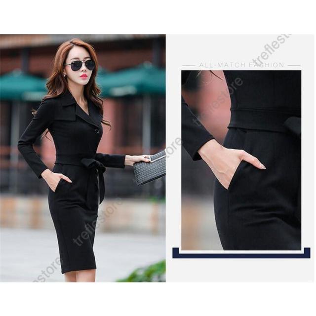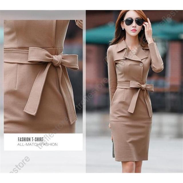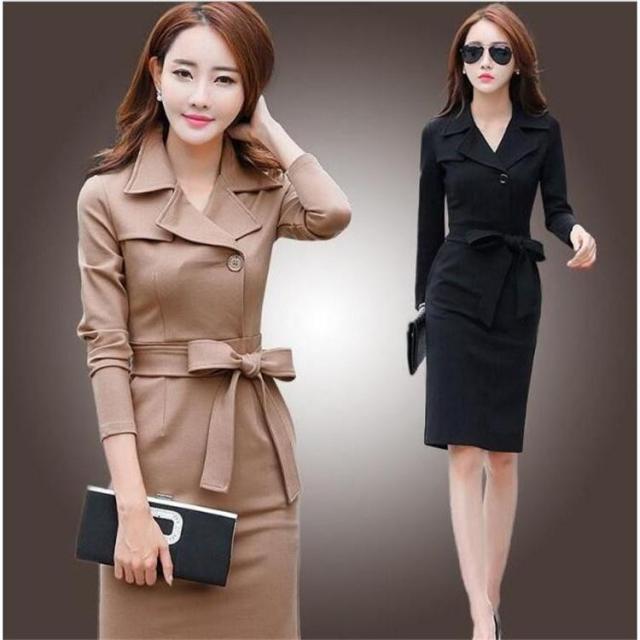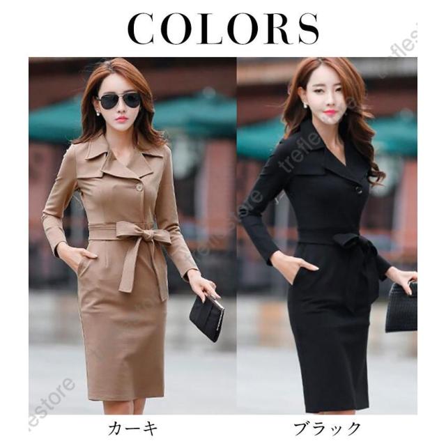 【ポイント5倍!】スーツワンピース レディース 通勤 タイト長袖ワンピース フォマール きれいめ 膝丈 着痩せ OL 春 秋物 2色