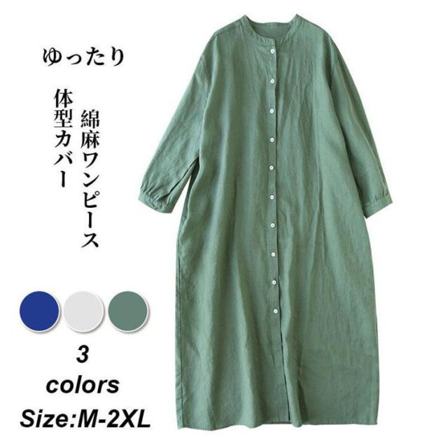 【ポイント5倍!】シャツワンピース ロングシャツ ワンピース ミディアム丈 半袖 シャツ レディース 綿麻 麻混 羽織 チュニック シャツワンピ 春夏 体型カバー ゆったり