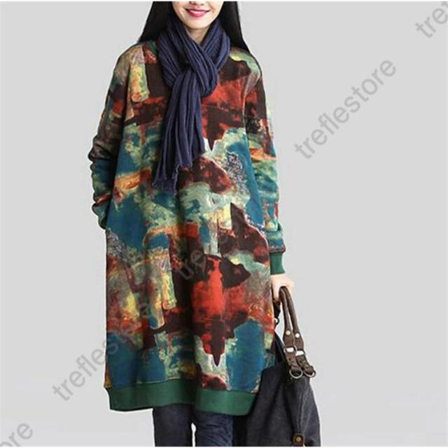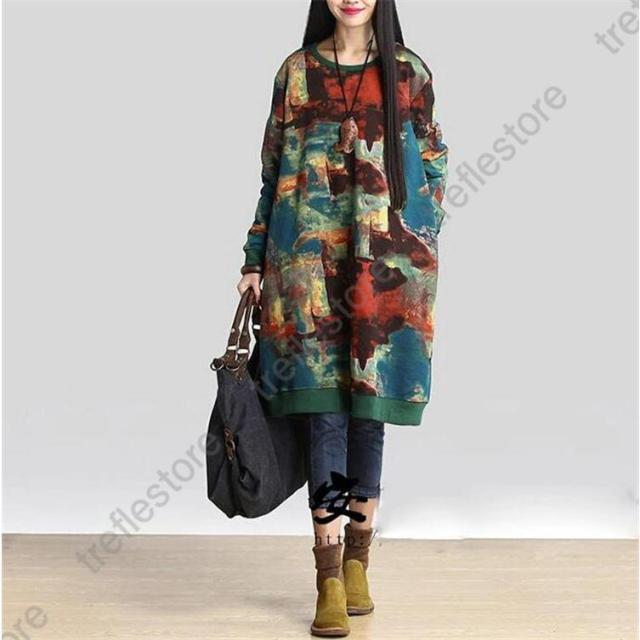 【ポイント5倍!】チュニック 大人可愛い チュニックワンピース 秋 春 冬 ワンピース レディース 森ガール ゆったり 膝丈 長袖 大きいサイズ 大人 ワンピ 体型カバー
