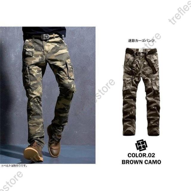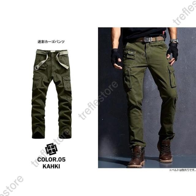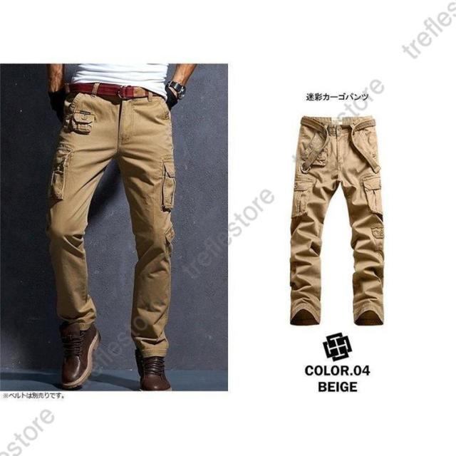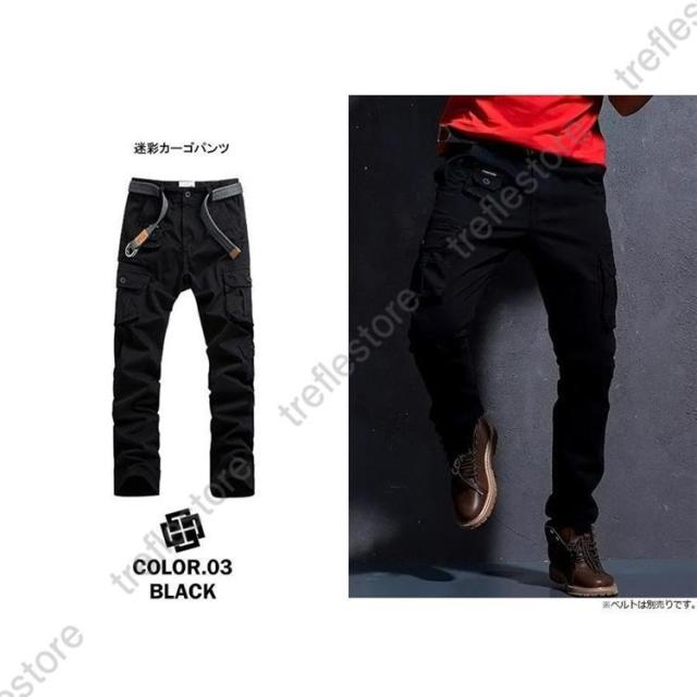 迷彩柄 スリムカーゴ ミリタリー 無地 カッコいい スケーター ミリタリーカーゴ ヒップホップ ズボン 作業用 ボトムス アメカジ 綿 黒 カーキ ベージュ