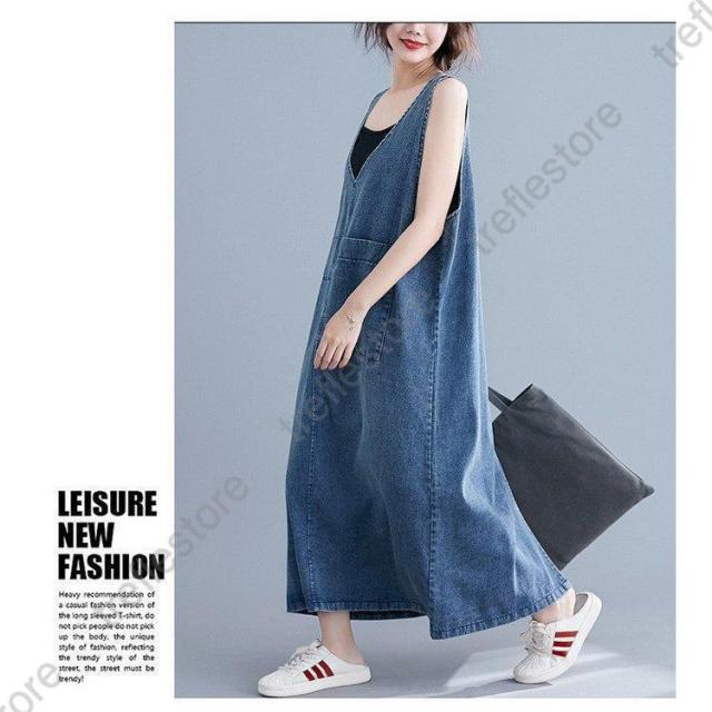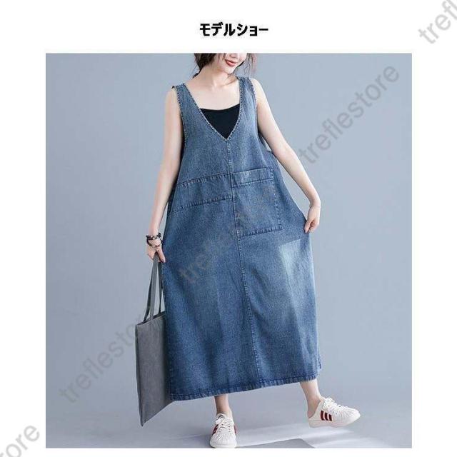デニム サロペットスカート レディース マキシ丈 ジャンパースカート デニム 40代 50代 60代 デニムワンピース オールインワン デニム ロング丈 体型カバー