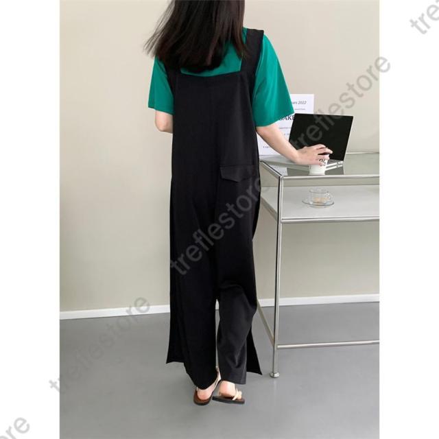 【ポイント5倍!】サロペット オールインワン レディース サロペットパンツ オールインワン パンツドレス オーバーオール ワイドパンツ ガウチョパンツ ゆったり 着痩せ OL