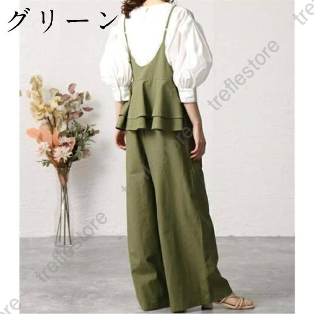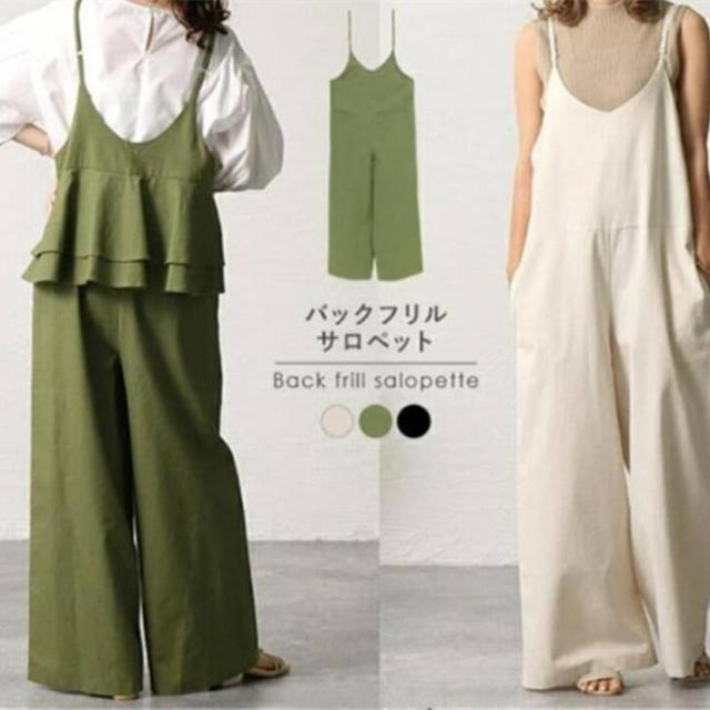 【ポイント5倍!】サロペット パンツ 春 夏 オールインワン レディース サロペットパンツ バックフリル サロペットオーバーオール コットン 綿 デザインがかわいい 安い