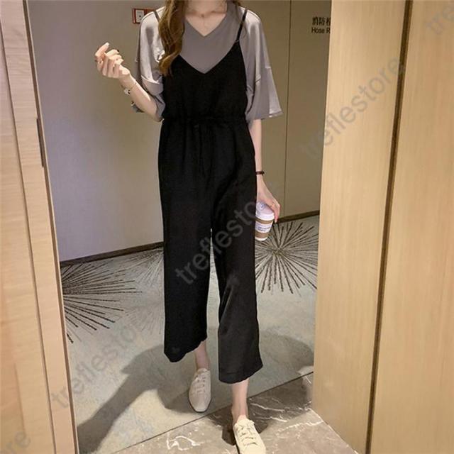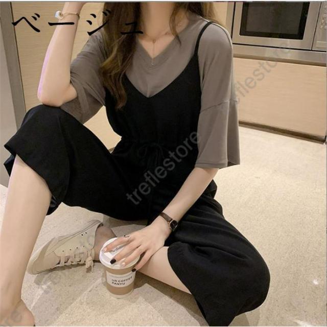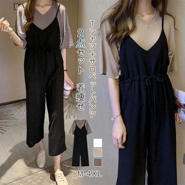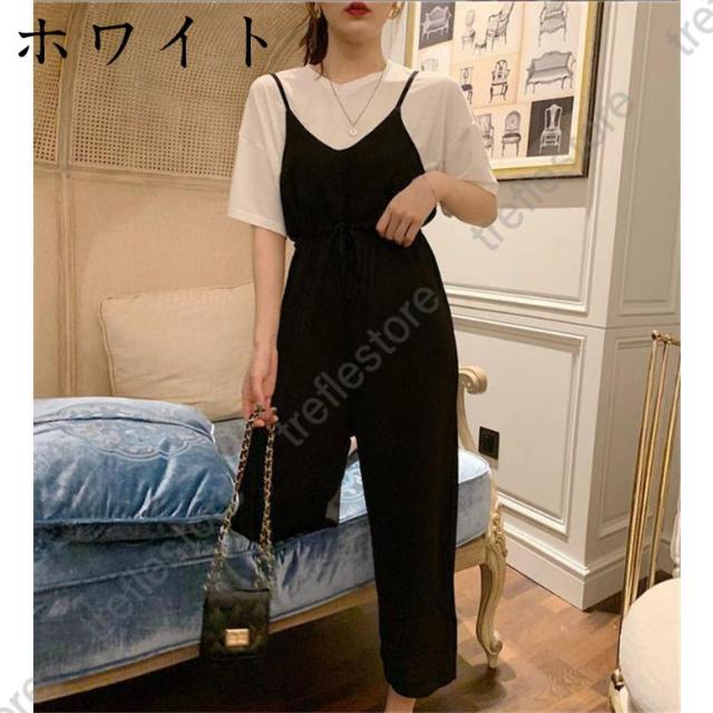【ポイント5倍!】サロペット パンツ 春 夏 オールインワン レディース サロペットパンツ バックフリル サロペットオーバーオール コットン 綿 デザインがかわいい 安い