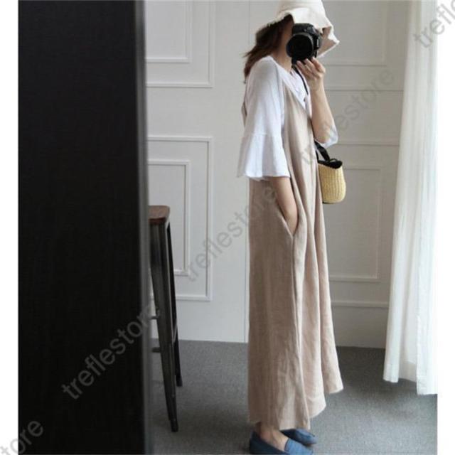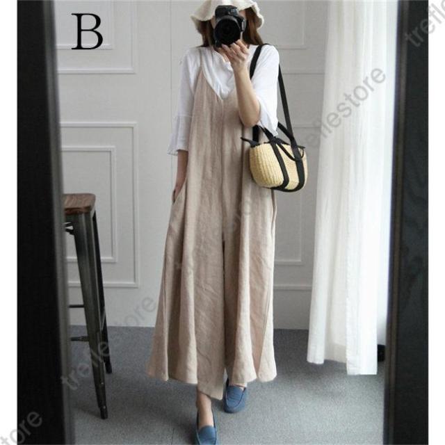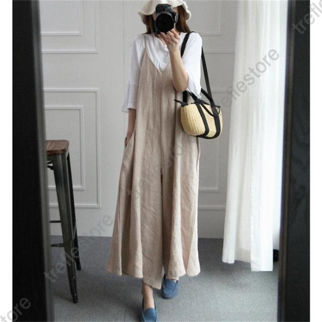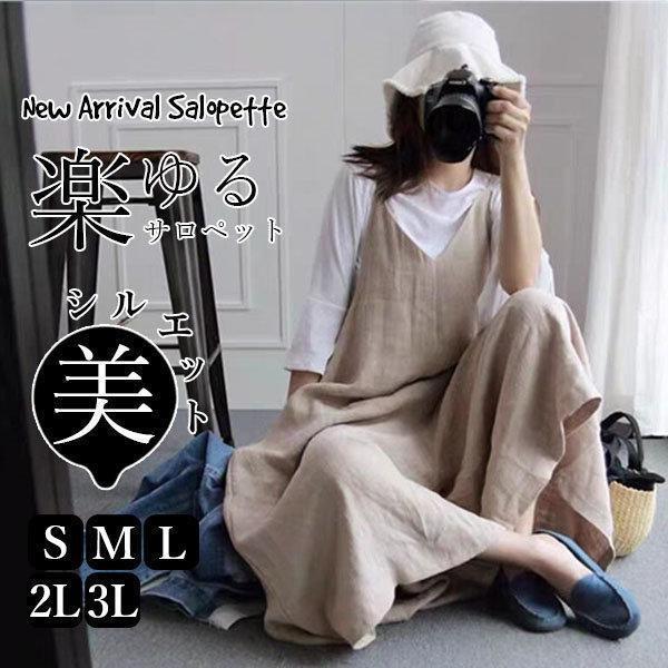 【ポイント5倍!】オールインワン サロペット レディース 夏物 綿麻混 ワイドパンツ ノースリーブ vネック 着痩せ リネン 可愛い おしゃれ 体型カバー 大きいサイズ 細身