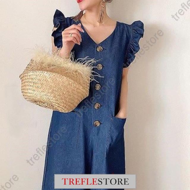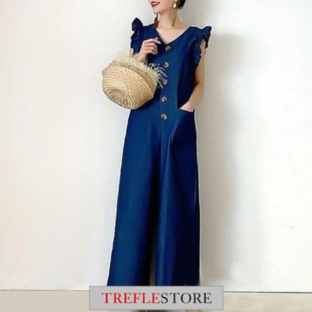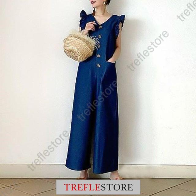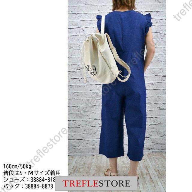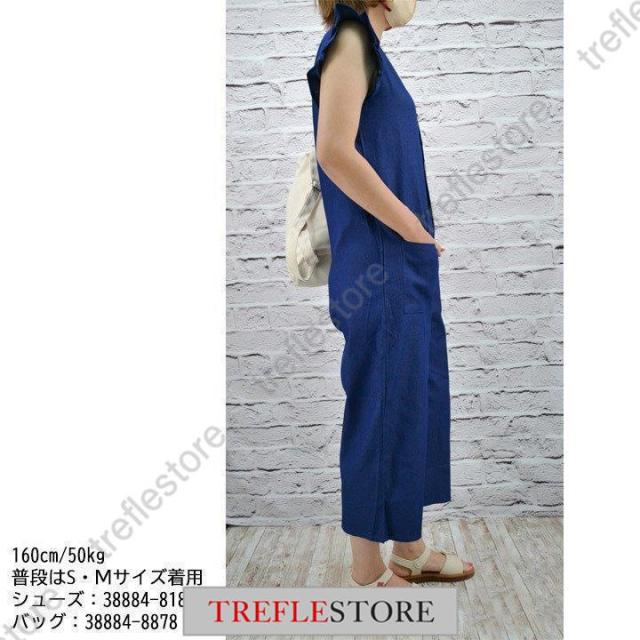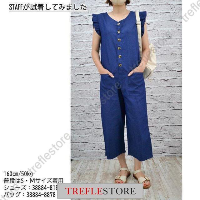 【ポイント5倍!】サロペット デニムサロペット フリル袖 インディゴ オールインワン サロペットパンツ デニムつなぎ レディース 春夏