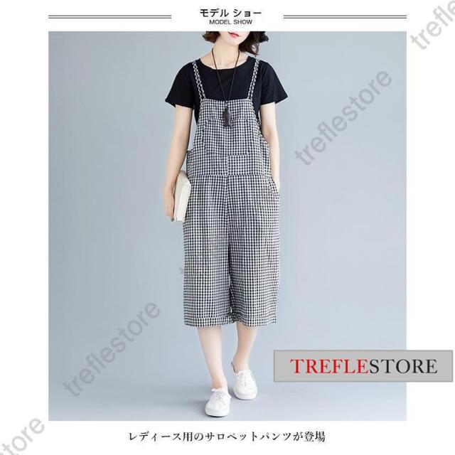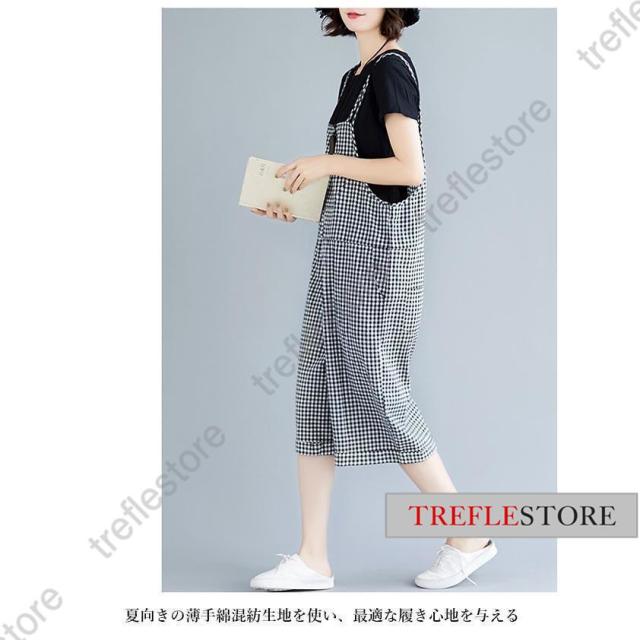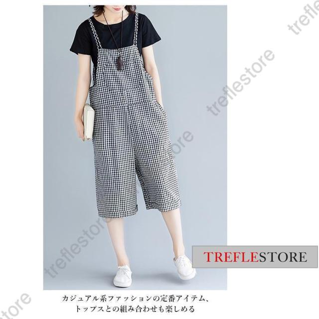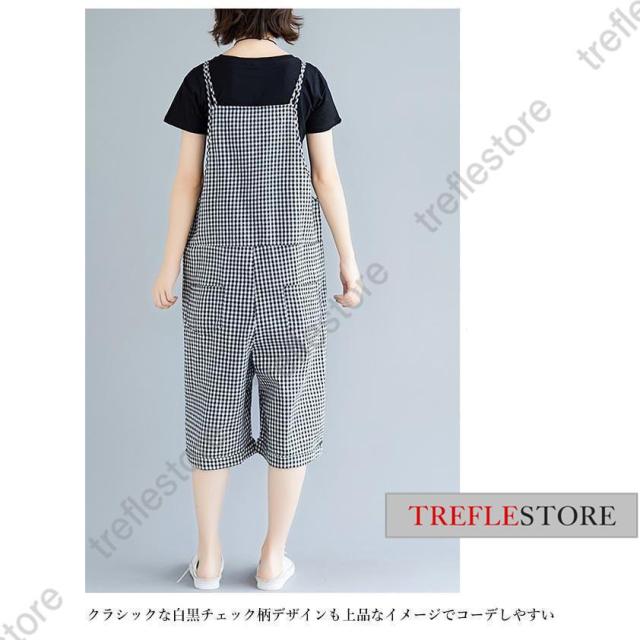 サロペットパンツ 夏 レディース サロペット ゆったり チェック柄 オーバーオール 薄手 サマーパンツ クロップドパンツ 七分丈 オールインワン