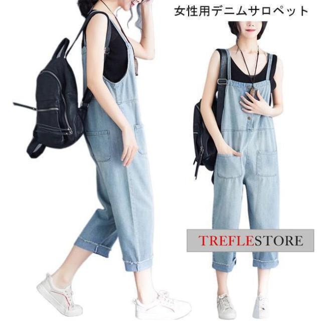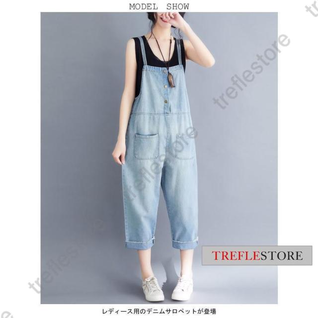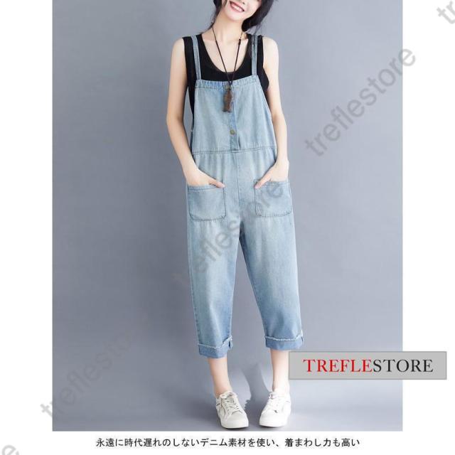 サロペット デニム レディース オーバーオール デニムサロペット ゆったり 女性 サロペットパンツ 九分丈 ジーンズ カジュアル お洒落