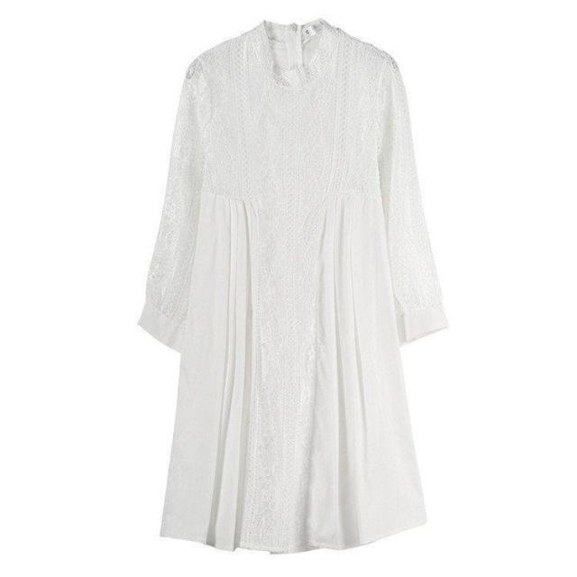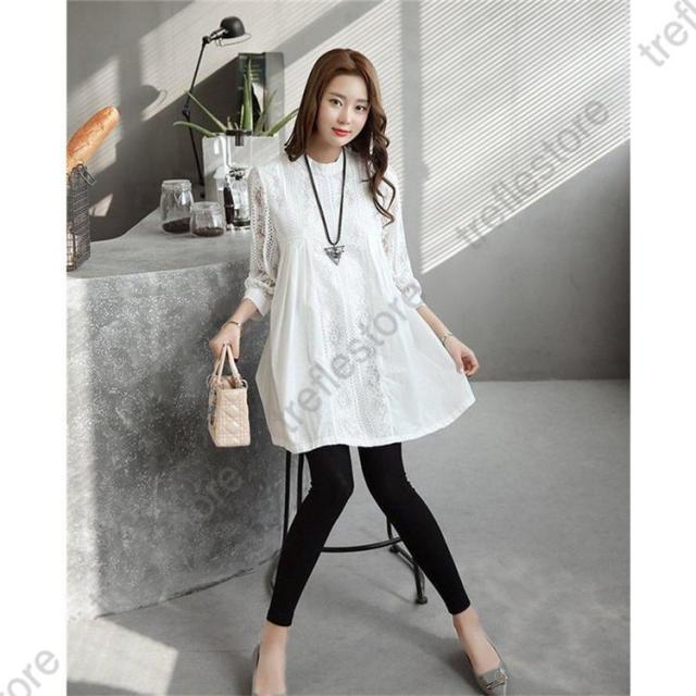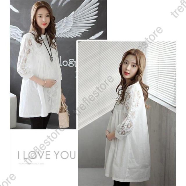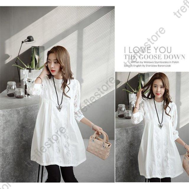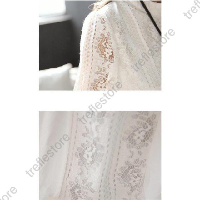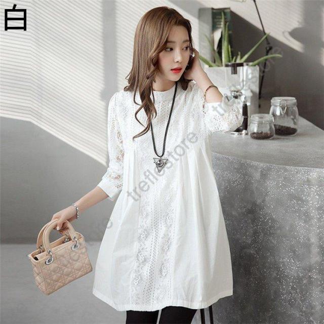 【ポイント5倍!】ブラウス レースチュニック チュニック 花柄 刺繍 レース 白 丸首 春 夏 ワンピース レディース 大人 可愛い 洋服 袖コンシャス ノーカラー ゆったり きれいめ