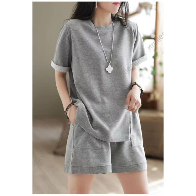 【ポイント5倍!】レディース上下セット 春夏 2点セット 半袖 パンツ 運動 スポーツ レディース洋服セットアップ 薄手 カジュアル おしゃれ トレンド 着回し