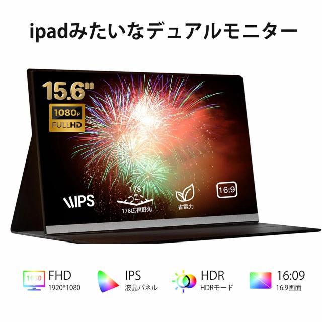 デュアルモニター モバイルモニター 15.6インチ 1920*1080 モバイルディスプレイ ポータブルモニター IPS液晶パネル 薄型 軽量 マグネット保護カバー付き USB Type-C ミニHDMI 折りたたみ 在宅勤務