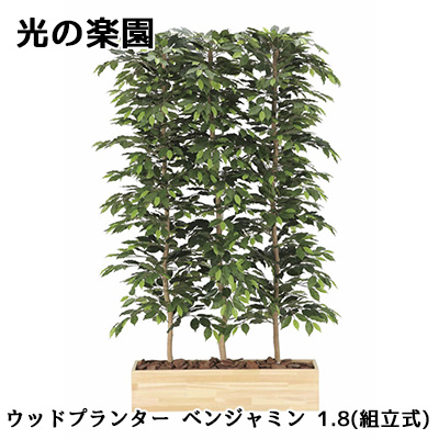 ● 光の楽園 (2608A1100) ウッドプランター ベンジャミン 1.8(組立式) 造花 人工 観葉植物 フェイクグリーン光触媒 送料無料 94313