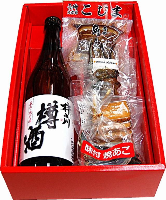 長崎ふるさと酒肴セットA/杵の川樽酒720ml 角煮 味あご ししゃも燻製 牡蠣燻製 チーズ燻製 クール便