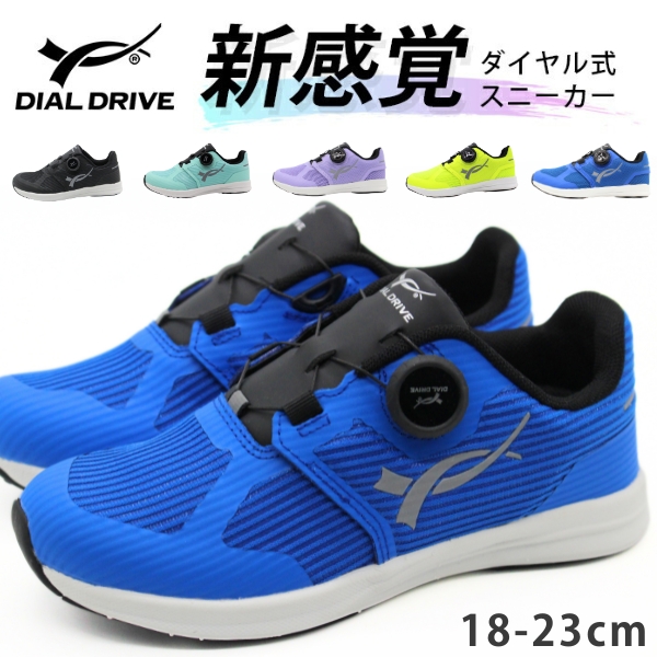 スニーカー キッズ ジュニア 子供 靴 黒 ブラック 青 ブルー 紫 パープル 黄色 イエロー ミント ダイヤル式 履きやすい 男の子 女の子 運動靴 小学校 かっこいい 通学 運動会 普段履き ダイヤルドライブ ダイヤルDRIVE PRO7 R41700-50 41706-60
