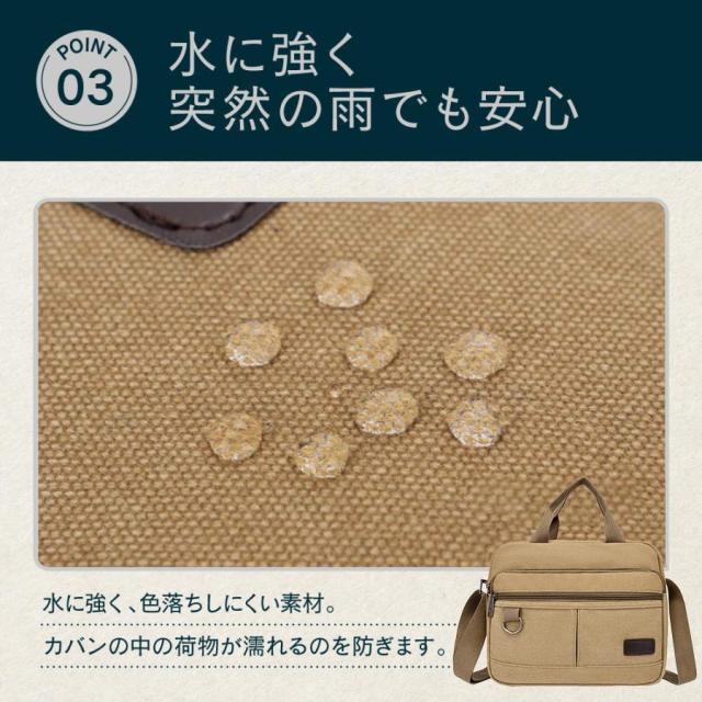 長さ調整ができるストラップ、便利なサイドポケット、丁寧な縫製、開け閉めしやすいファスナー