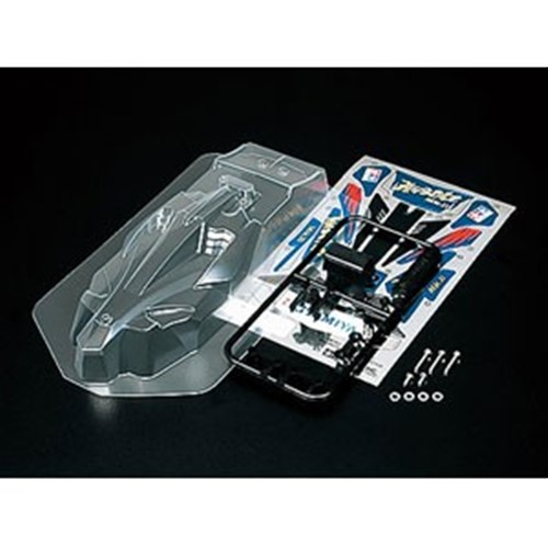 キット標準のボディに比べて約半分の軽さ、しかも強度も十分なポリカーボネート製クリヤーボディです。