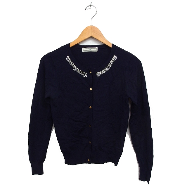 【中古】ナノユニバース nano universe W ビジュー付き ニット カーディガン 丸首 F ネイビー 紺 /FT15 レディース