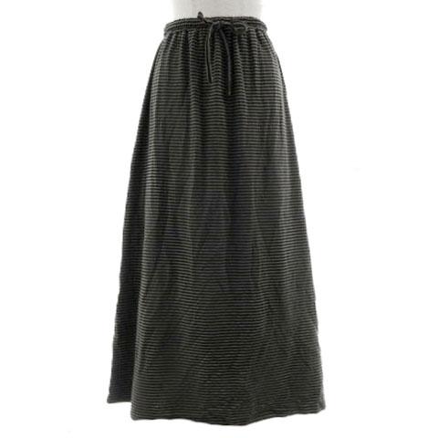 【中古】アバハウスエクリュ ABAHOUSE ECRU スカート フレア ロング丈 ウエストゴム ボーダー グレー ブラック 黒 F