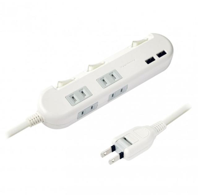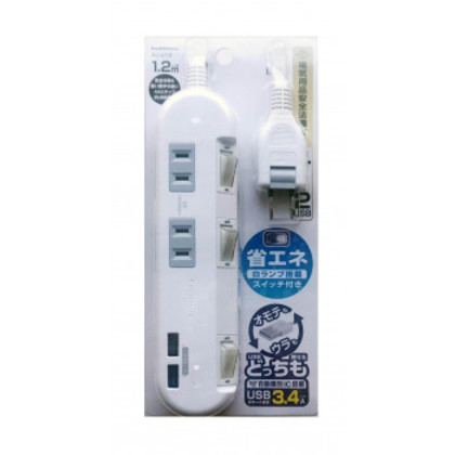 電源タップ 4AC-2USB-3.4A SW 1.2m WH AC-010 |b03