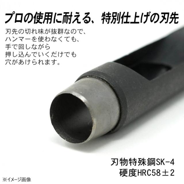 商品詳細:刃物特殊鋼SK-4・硬度HRC58±2を使用した特別仕上げの刃先です。各種レザーや厚紙、ビニール、布、ゴムのなどの補修・補強・製作におすすめです。安心の日本製で、刃先の切れ味が抜群なので、ハンマーを使わなくても、手で回しながら押し込んでいくだけでも穴があけられます。 生産国:日本 素材・材質:刃物特殊鋼SK-4 商品サイズ:4.2×15×2cm 重量:80g