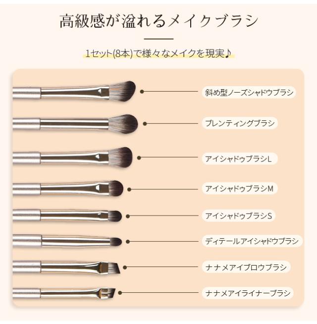 メイクアップに欠かせないメイクブラシ8本セットです。