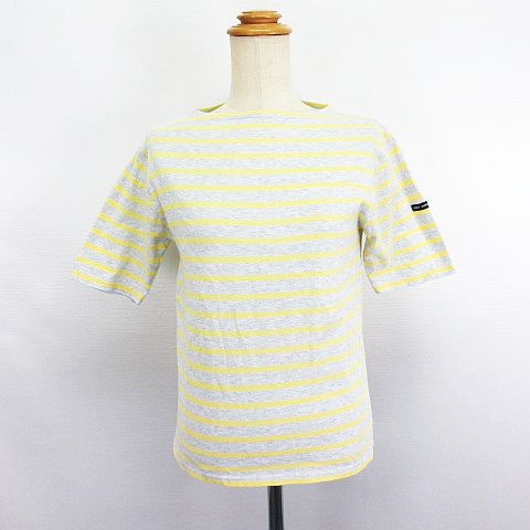 【中古】セントジェームス Tシャツ バスクシャツ 半袖 ボートネック ボーダー XS グレー×イエロー ※EKM レディース