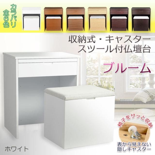 ホワイト 仏壇台【便利な収納式椅子・隠しキャスター付き仏壇台:ブルーム】上置き仏壇用 モダン仏壇台 椅子付仏壇台