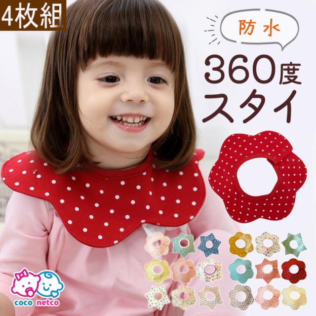 スタイ 360度 4層4枚組 よだれかけ エプロン ビブ 男の子 女の子 おしゃれ 防水 ベビー 赤ちゃん キッズ 子供 綿100% コットン お出かけ 通気性 吸収性 大きめ 出産祝い ギフト 保育園 入園準備