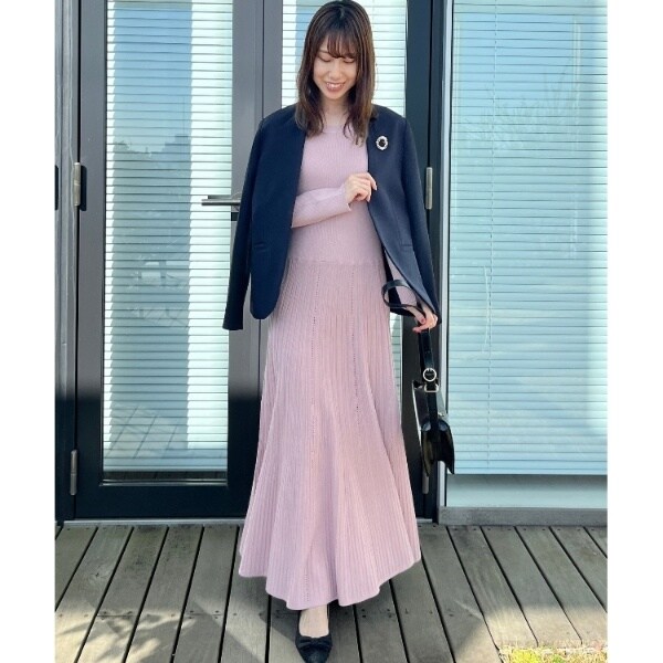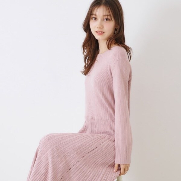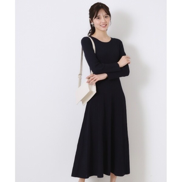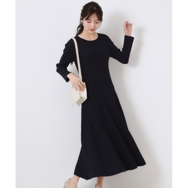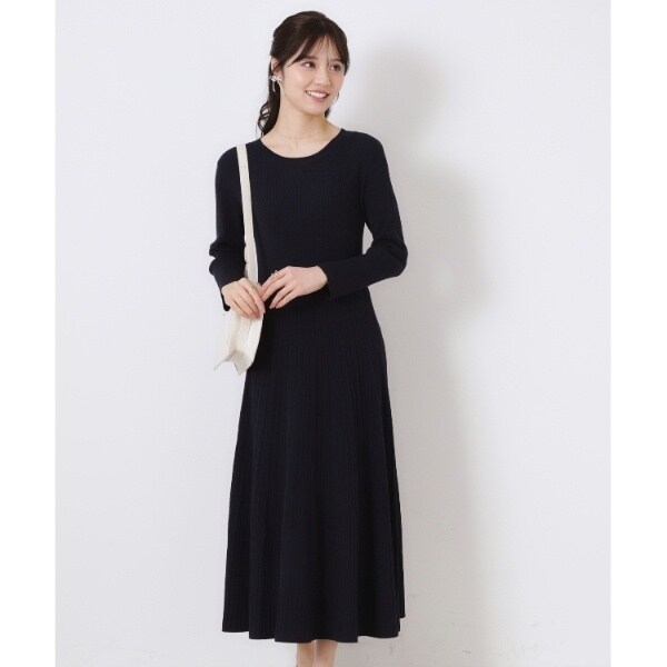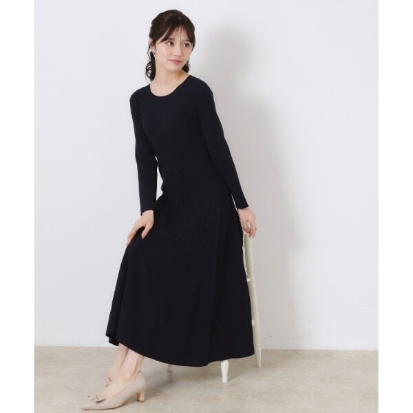 クチュールブローチ(Couture Brooch)/【上品な落ち感・美シルエット】アイレットリブデザインニットワンピース