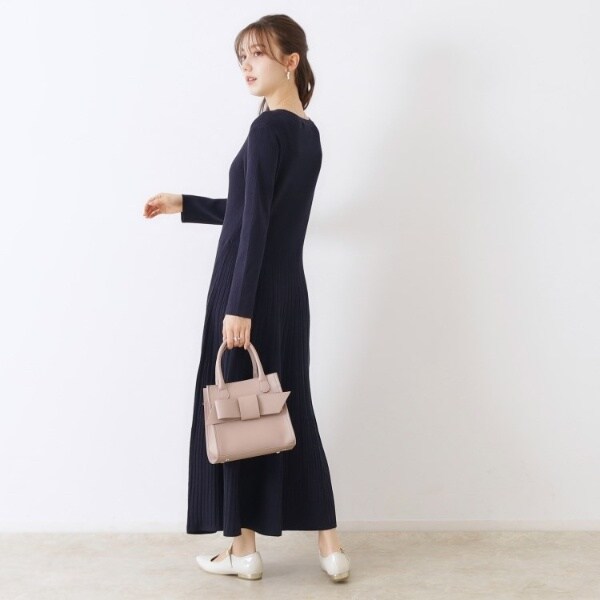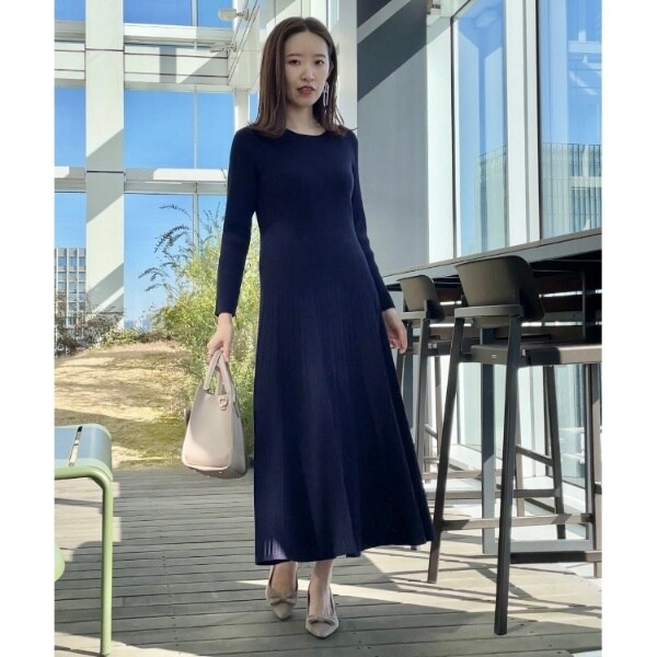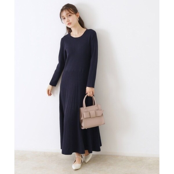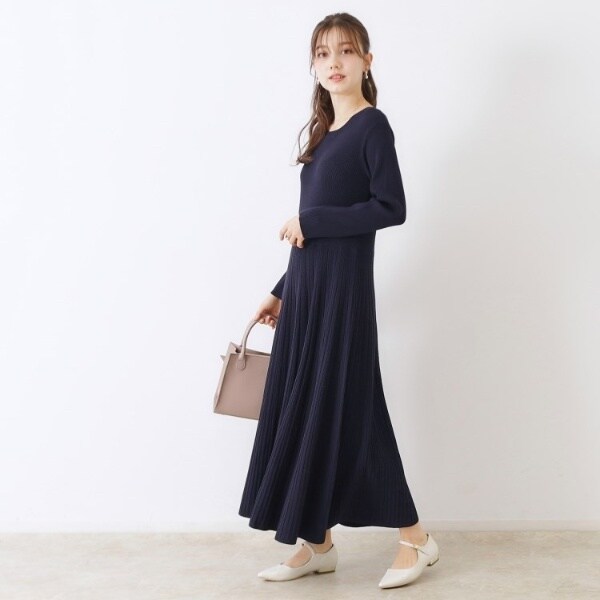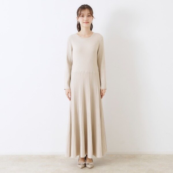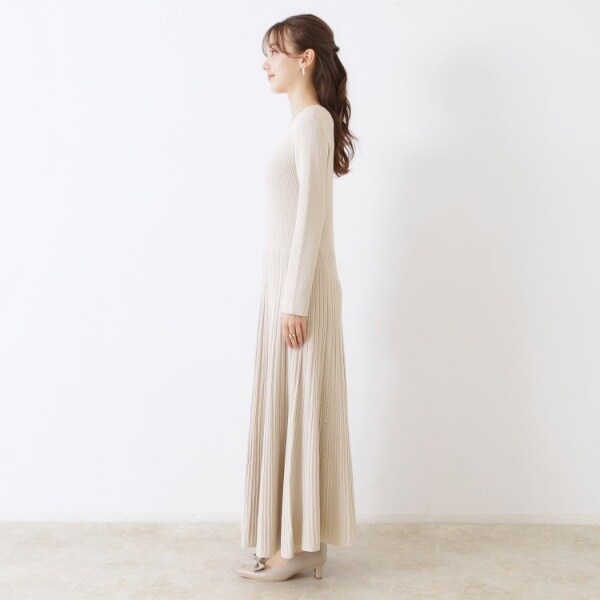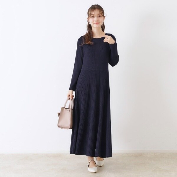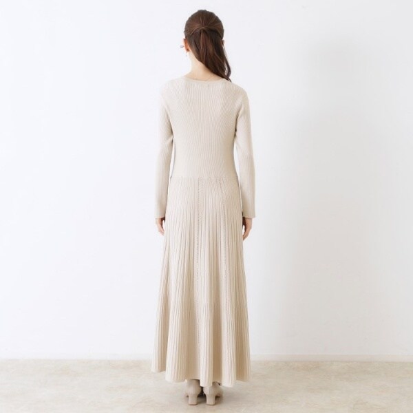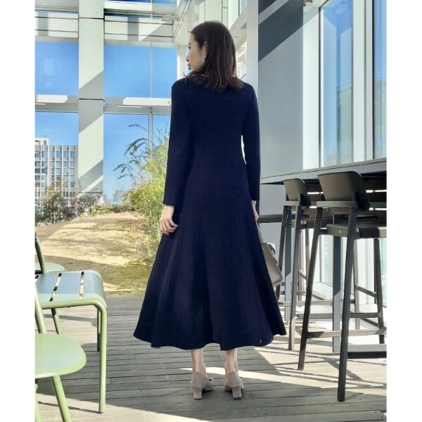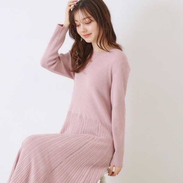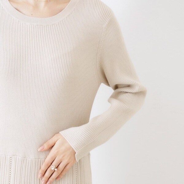 【上品な落ち感・美シルエット】アイレットリブデザインニットワンピース