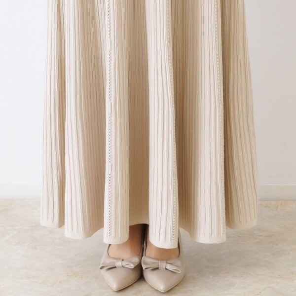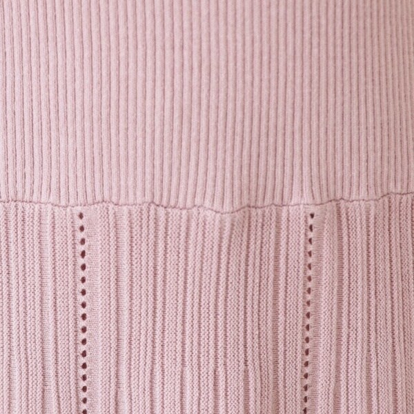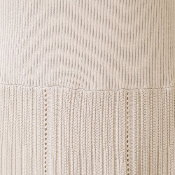 上身頃はすっきりとしたリブで、スカート部分には軽やかに見せてくれるアイレットデザインに。