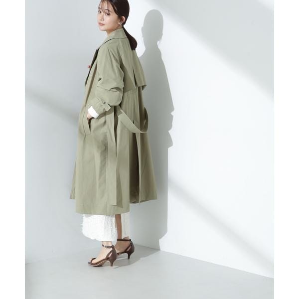 オーバーサイズな身頃でバサッと羽織れるライトトレンチコート。そのままオーバーサイズで抜け感を出したり、ドロストでウエストを絞ってバックスタイルに変化をつけたり、ウエストリボンをぎゅっと絞るなど、幅広い着こなしを楽しめる万能アイテムです。