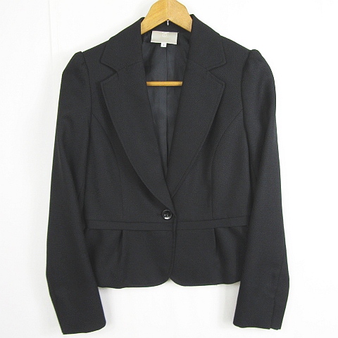【中古】エマジェイムス EMMAJAMES テーラードジャケット 7AR ブラック エンボス加工 kz10544 レディース