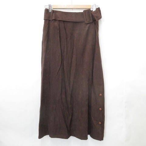 【中古】未使用品 KOZOIMRA スカート フレアスカート ロング 起毛 ベルト付き 装飾 ボタン 無地 茶色 ブラウン 11
