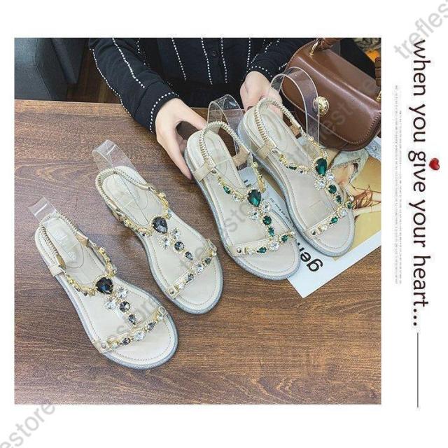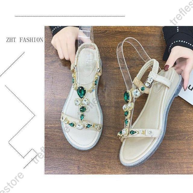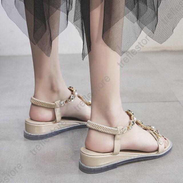【商品説明】:サンダル レディース 履きやすい 夏 サンダル ストラップサンダル 厚底靴 ウェッジソール ローマブール キラキラ ぺたんこ 歩きやすい 美脚 大人 新作 ボヘミア風