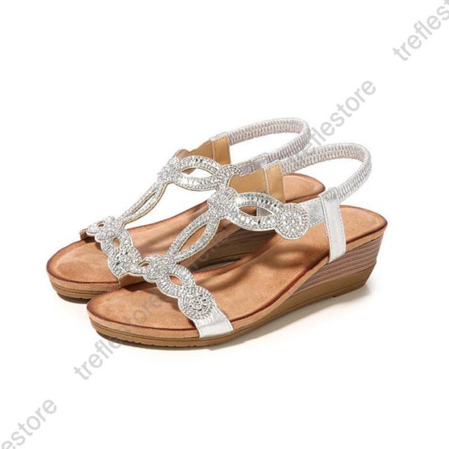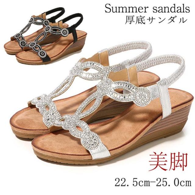 【ポイント5倍!】サンダル ウェッジソール レディース ウェッジサンダル キラキラ ヒール 厚底 フィット 軽量 歩きやすい 痛くない 安定性 ママ 夏