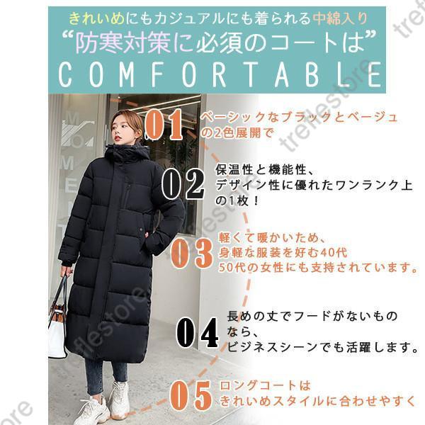 【ポイント5倍!】中綿コート レディース ロングコート ロング丈 ベンチコート フード付き ダウンジャケット アウター シンプル 厚手 あったか 通勤 通学