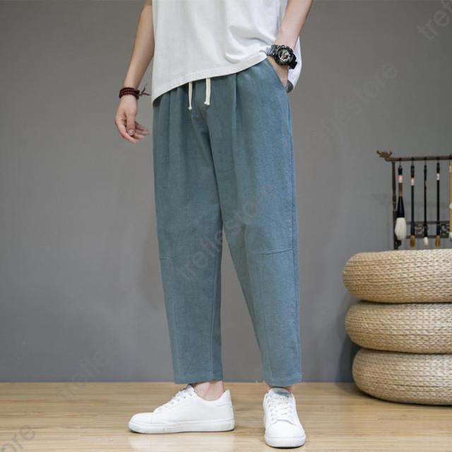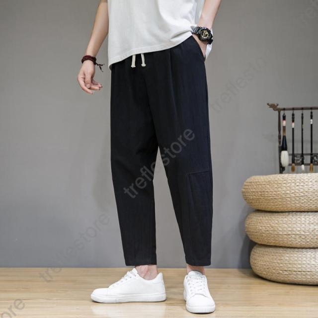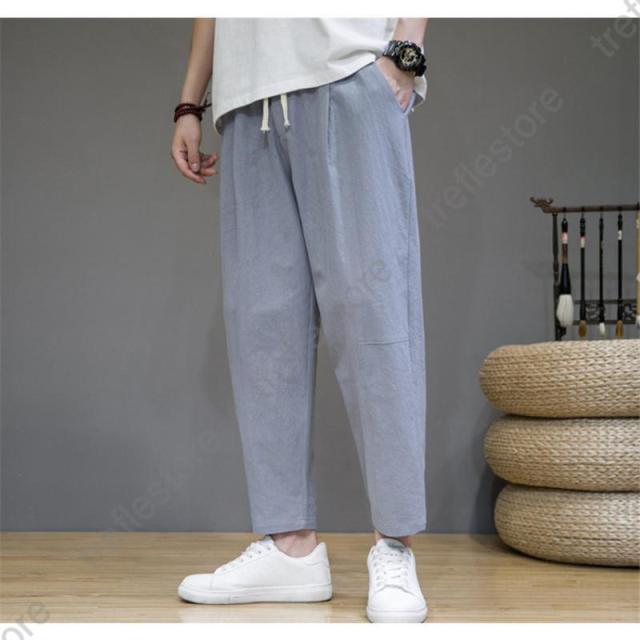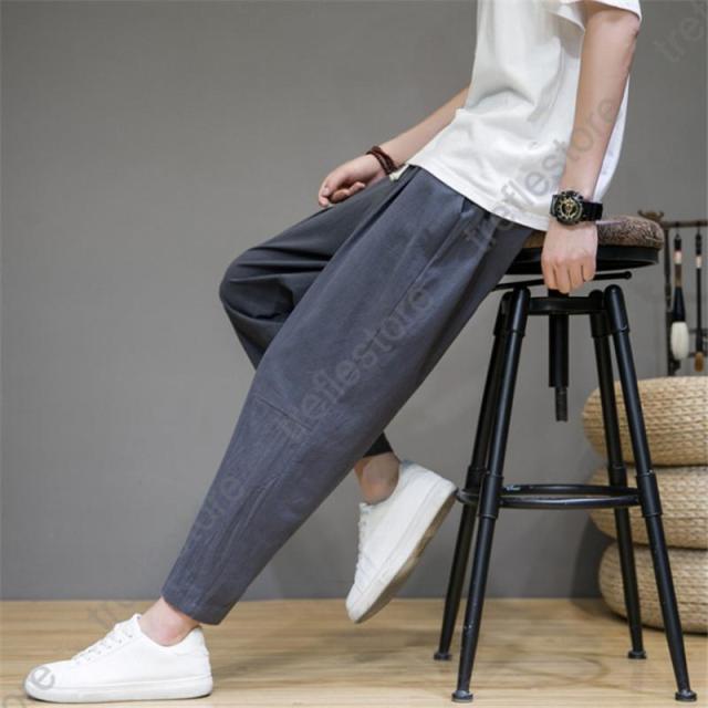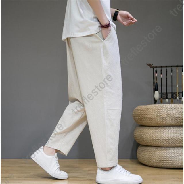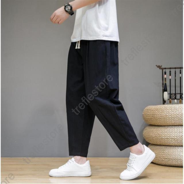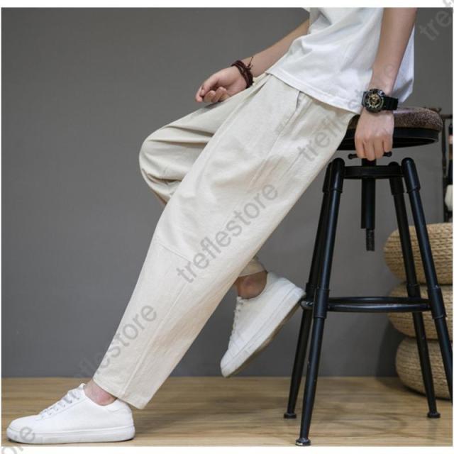 サルエルパンツ メンズ 綿麻 ズボン 長ズボン 綿麻パンツ リネン 薄手 イージーパンツ ワイドパンツ ルームウェア 部屋着 アンクルパンツ ウェストゴム ワイドパンツ 九分丈 チノパン 涼しい バギーパンツ エスニック テーパードパンツ テー カジュアル 大きいサイズ