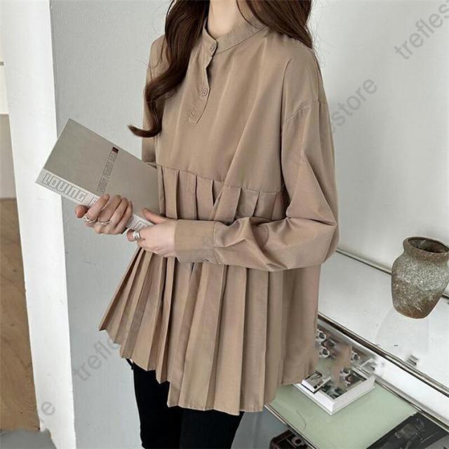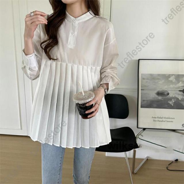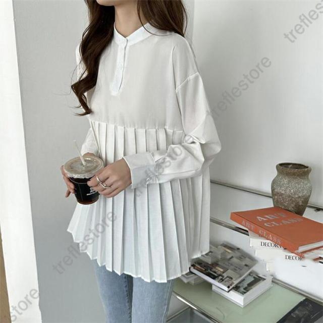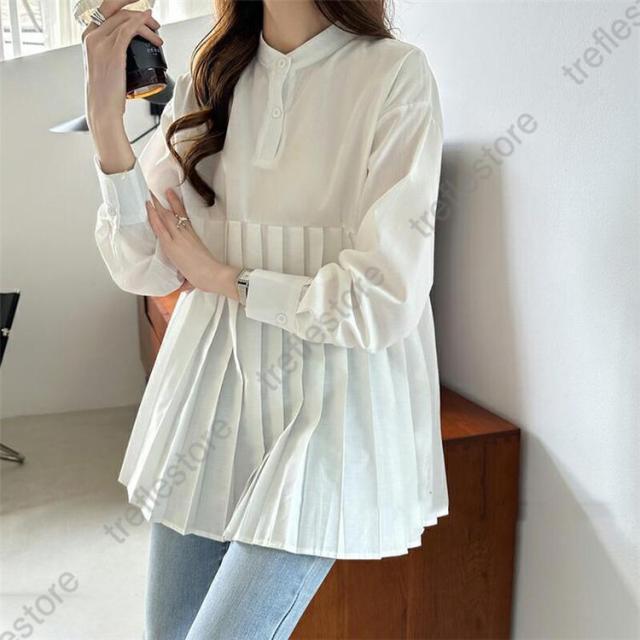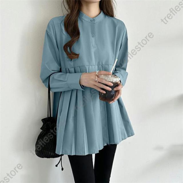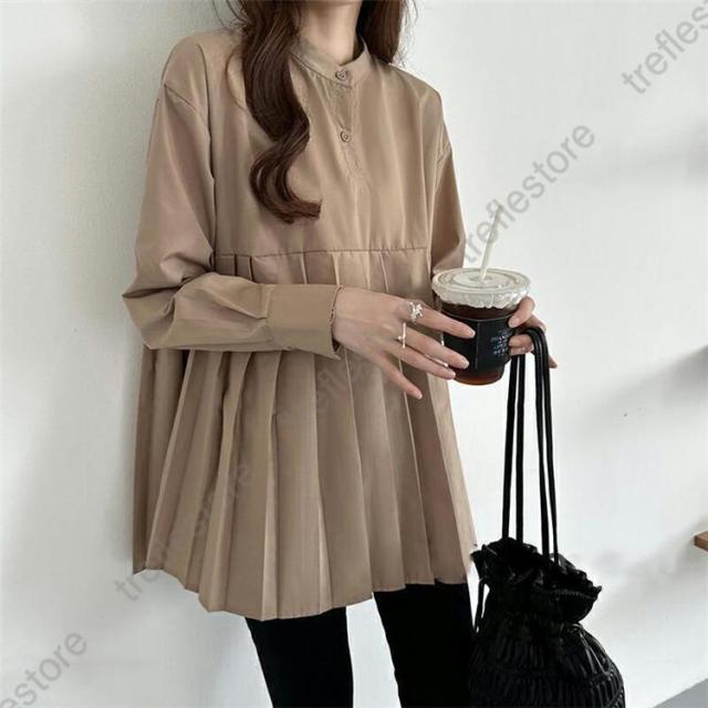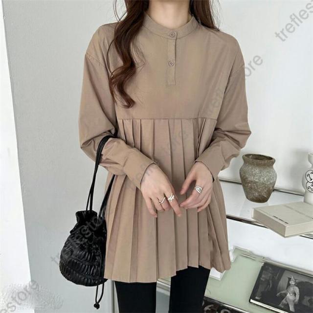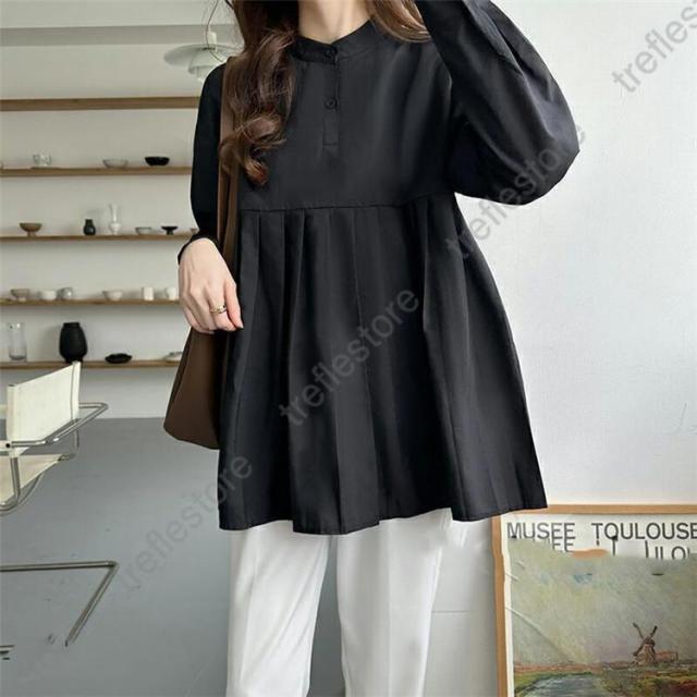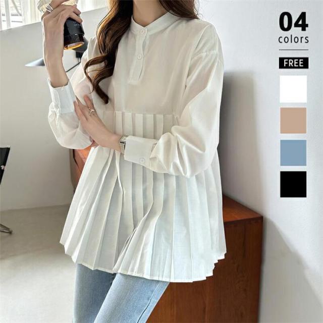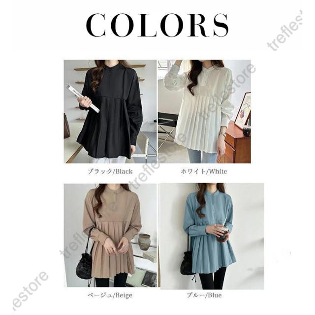 ブラウス レディース チュニック トップス 長袖 袖 ゆったり 体型カバー 二の腕カバー 二の腕 カバー 隠し お腹カバー aライン タック 切り替え プリーツ切り替え 切り替えブラウス ハイウエスト 細見え 着回し プリーツ バンドカラー 長袖チュニック 長袖ブラウス 着丈長め 襟なし コットン 綿 ポリエステル シンプル 無地 シャツ シャツブラウス tops プチプラ 高見え 通勤 通学 お出かけ おでかけ 旅行 オフィス オフィスカジュアル カジュアル フェミニン 上品 大人 かわいい 可愛い 大人可愛い 女性 きれい め きれいめ キレイめ おしゃれ オシャレ ママ ママコーデ 母 女性 フリーサイズ ブラック 黒 ホワイト 白 ベージュ ブルー 水色 新作 2023 2023aw 秋冬 春 秋 冬 春服 秋服 冬服 韓国 韓国ファッション 10代 20代 30代 40代 50代