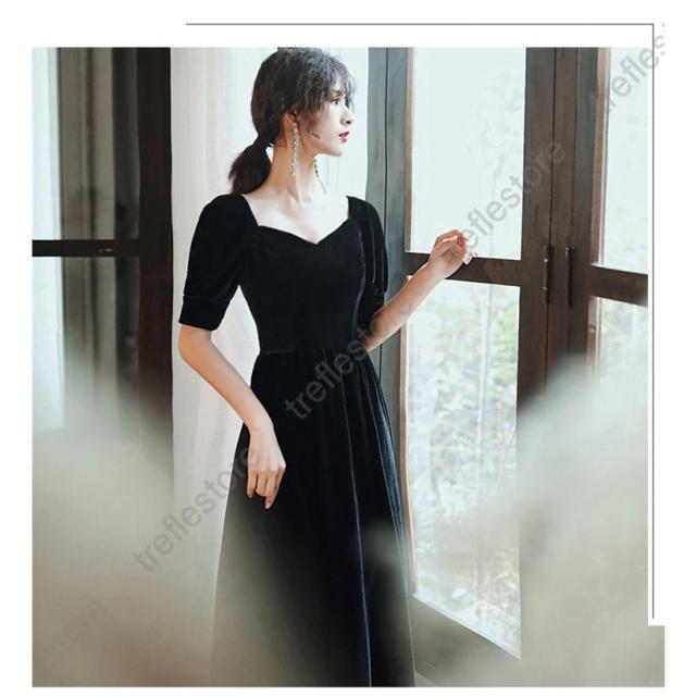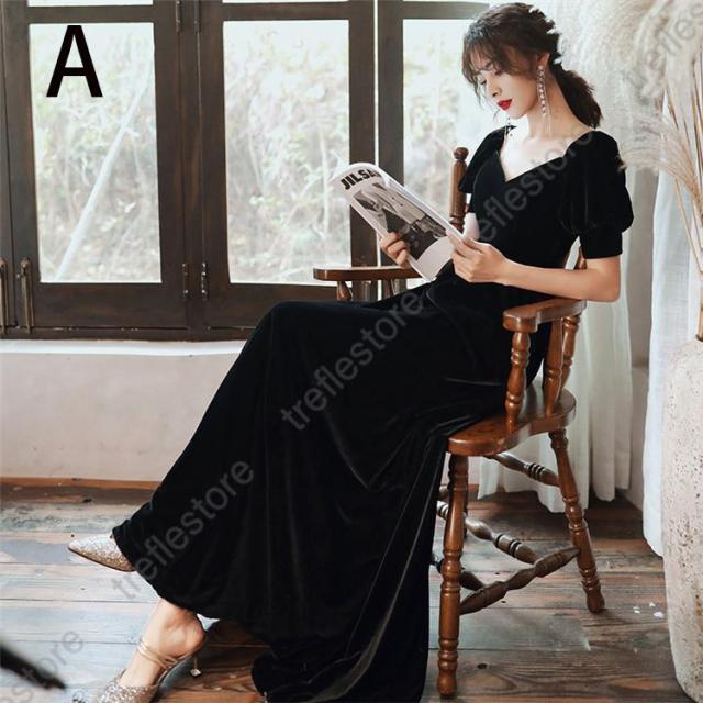 パーティードレス ロング ロングドレス 結婚式 服装 ドレス お呼ばれドレス 女性 20代 30代 40代 黒 演奏会 袖あり 半袖 ワンピースドレス 演奏会用ロングドレス 小さいサイズ 大きいサイズ 3L 上品 シンプル ハイウエスト ブラック