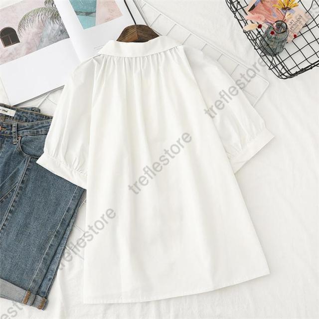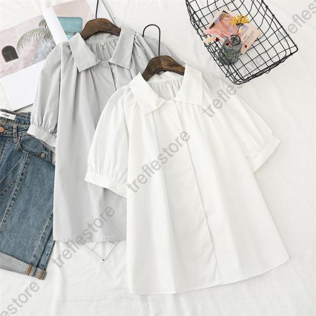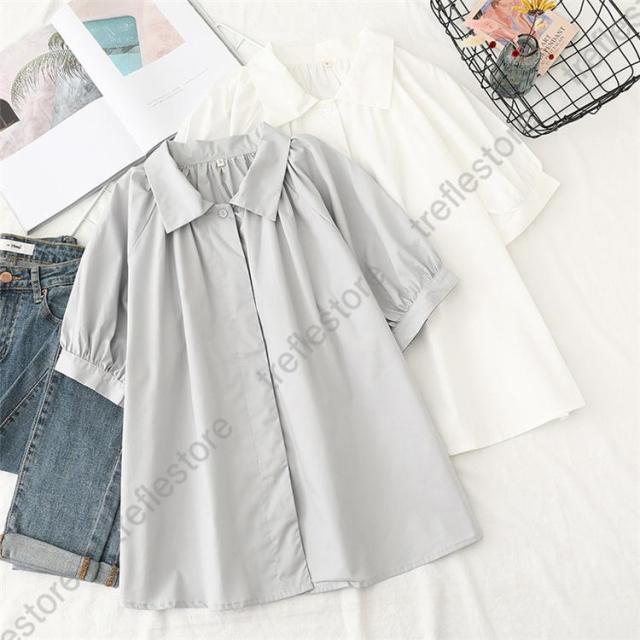 ブラウス レディース 半袖 トップス 夏 シャツ 開襟 40代 無地 襟付き チュニック 体型カバー 大きいサイズ ゆったり カットソー 柔らかい 50代 30代