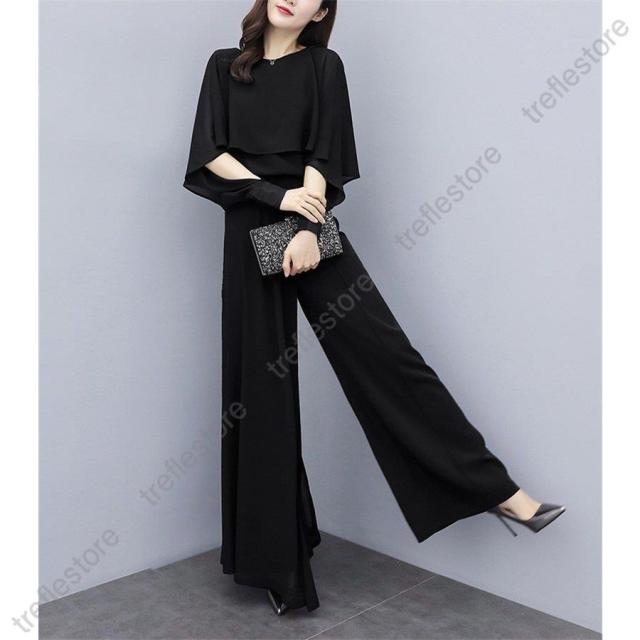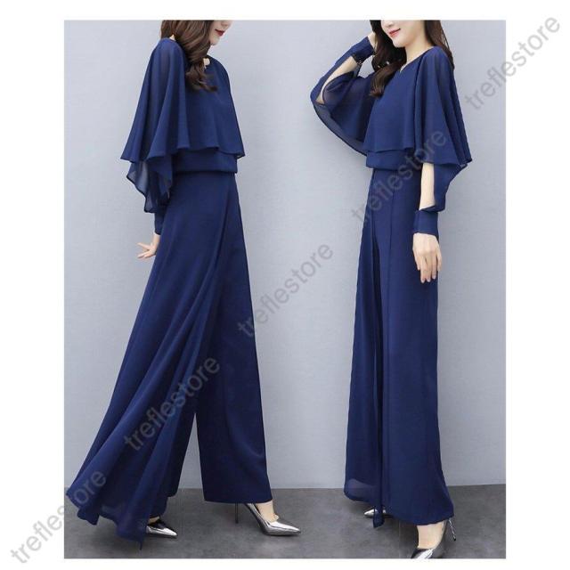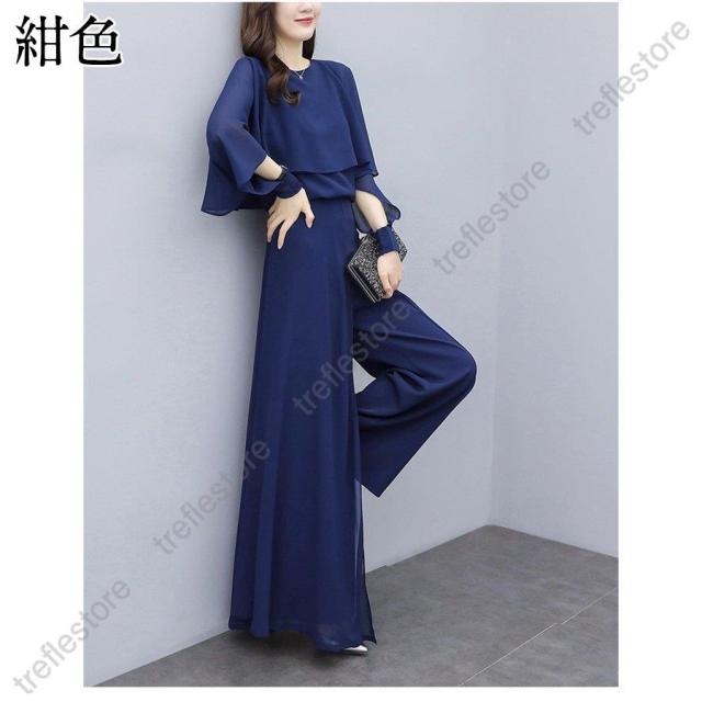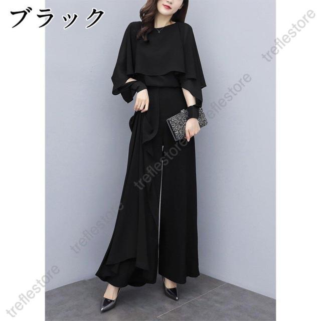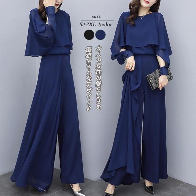 セットアップ レディース パンツスーツ パンツスタイル パンツドレス パーティードレス ワイドパンツ フォーマルドレス 体型カバー 中袖 30代 40代
