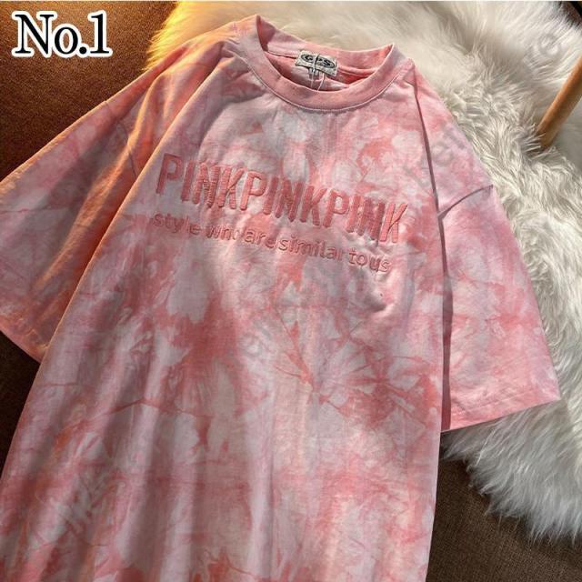 【ポイント5倍!】Tシャツ レディース タイダイ柄 半袖 夏 ゆるい トップス 韓国ファッション 原宿系 BF風 ヒップホップ ダンス ストリート風 カジュアルおしゃれ