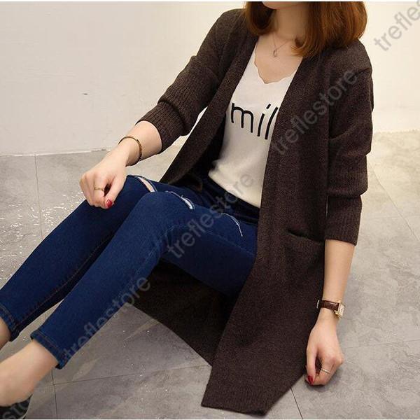 【ポイント5倍!】ロングカーディガン レディース ニット 長袖 コート トップス 上着 ニットウェア ポケット 暖か 毛糸 アウター ゆったり